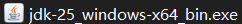 • 双击打开下载好的 jdk-25_windows-x64_bin.exe 安装包执行文件(见下图)